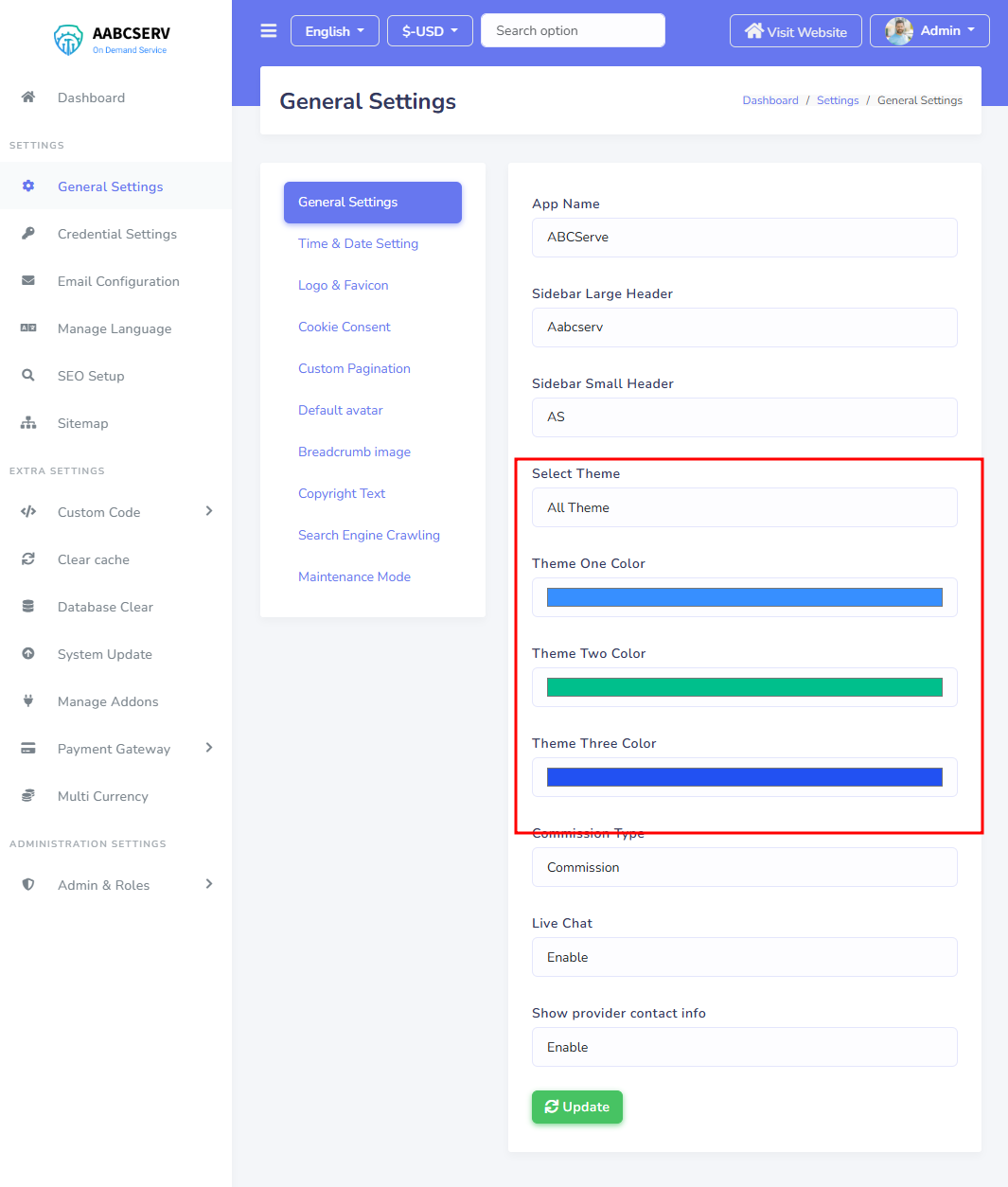 Website General Setting can be set up from the admin panel. In this section admin can be change the website title, logo, favicon, copyright, time & date format, default avater, maintenance mode and many more. Go to Setting >> General Setting. See: