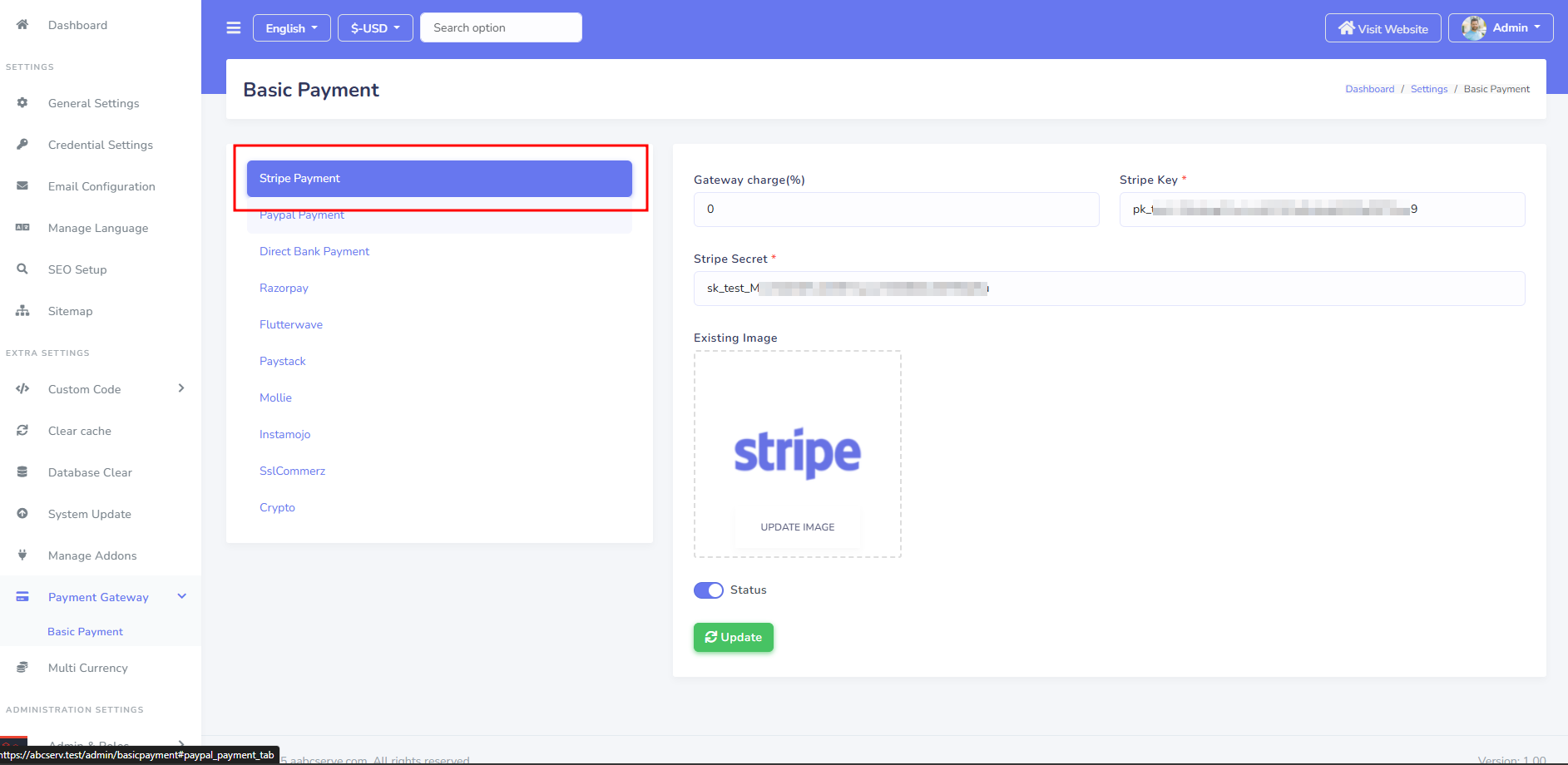 Payment Method can be set up from the admin panel. Go to "Setting >> Payment Gateway >> Basic Payment" from sidebar. See:
